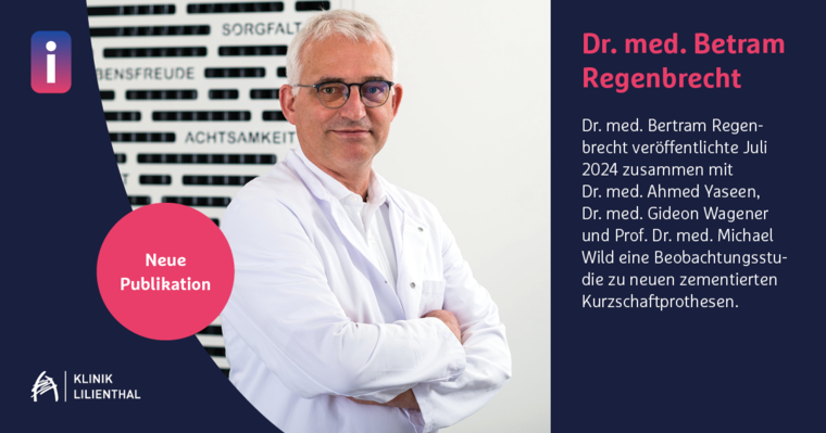 In der wissenschaftlichen Fachzeitschrift Antibiotics veröffentlichte unser Chefarzt für Orthopädie und Unfallchirurgie Dr. med. Bertram Regenbrecht Anfang Juli zusammen mit Dr. med. Ahmed Yaseen, Dr. med. Gideon Wagener und Prof. Dr. med. Michael Wild eine Beobachtungsstudie zu neuen zementierten Kurzschaftprothesen.